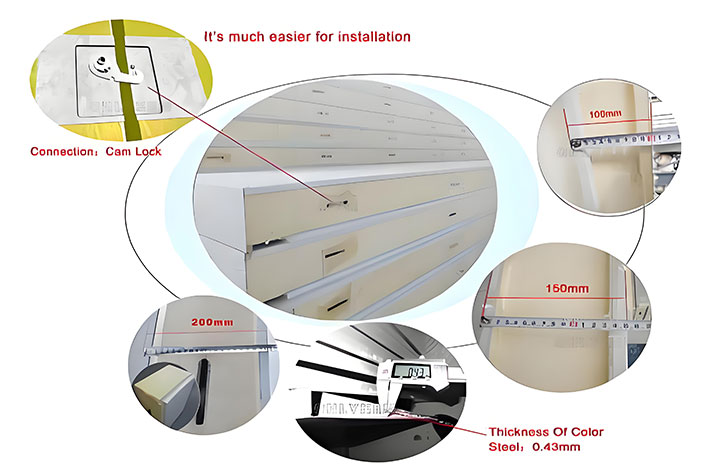 (2) Connected by cam-lock with tape, no more polyurethane will be filled into cam lock when producing, it is easier to install.